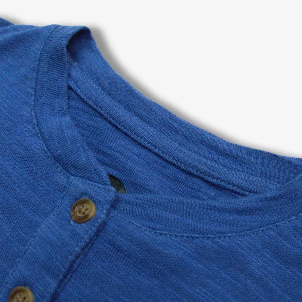 Elevate his everyday style with our Allday Henley. Crafted from 100% cotton, these long-sleeve shirts offer unbeatable comfort and durability. Available in Classic Blue and Taupe, they feature a classic henley design with a half-placket for sophistication. The super-soft fabric ensures all-day comfort, making them perfect for school, playdates, or any casual occasion. Keep him looking sharp and feeling cozy with our versatile Allday Henleys.