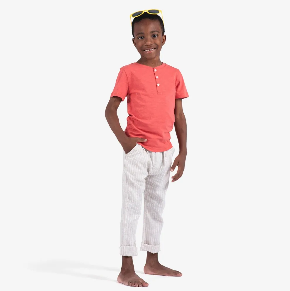 Meet Appaman’s latest for boys – the Day Party Henley in Coral. This classic half-button-up shirt is your go-to for everyday summer style. Keep it cool and timeless with Appaman. It’s also extra soft, made from 100% cotton!