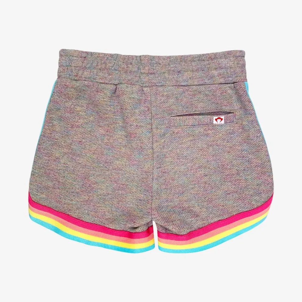 Hit the playground with these rainbow trimmed soft shorts. Offers a comfy and sporty look.