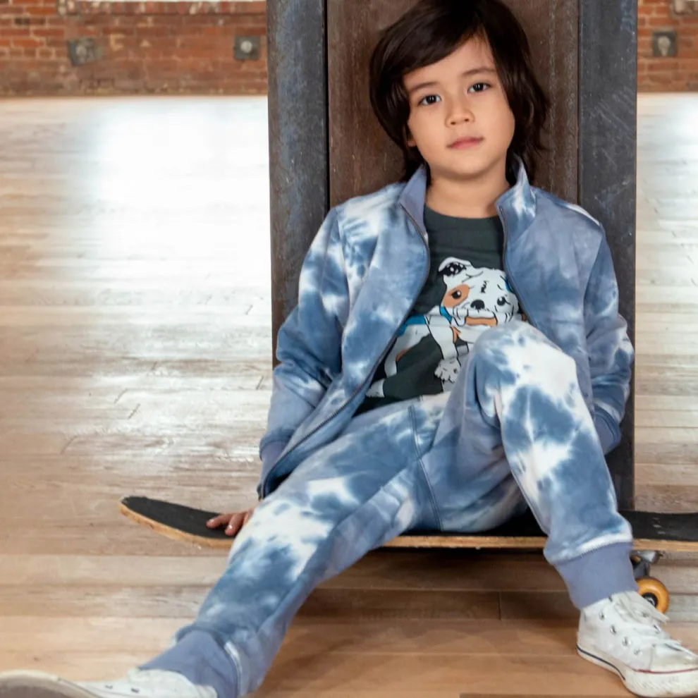 Young style makers will be racing ahead of fashion trends in a lightweight track jacket made extra cool with a blue tie-dye finish! This track jacket will keep your kiddo comfy and ready to explore season after season!