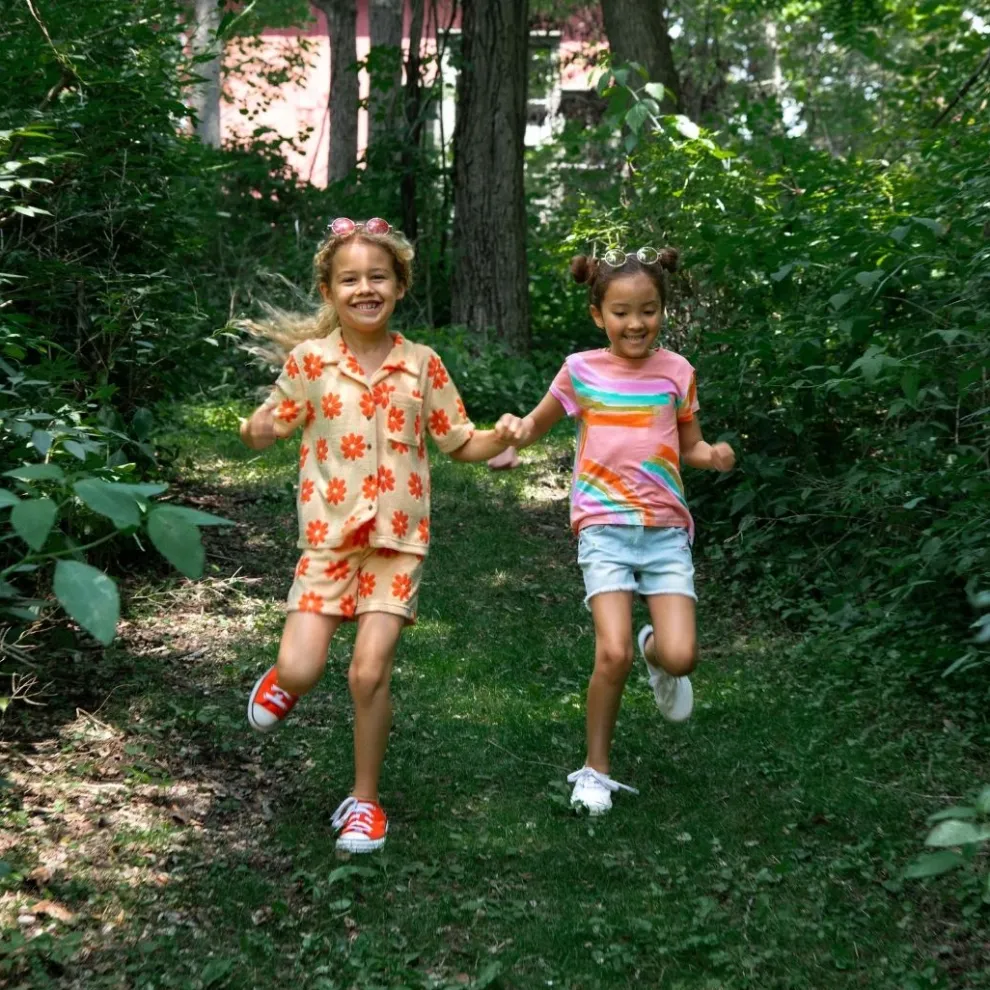 Elevate your little one’s style with Appaman’s Light Orange Collared Tee. This button-up short sleeve, paired with matching shorts, is the epitome of resort fashion. The terry cloth fabric features charming orange daisies, adding a playful touch. Perfect for sunny getaways or casual outings, this set combines comfort and chic seamlessly. Embrace the allure of our Resort Collection – where every outfit is a statement. Dive into sunny days with this must-have duo!