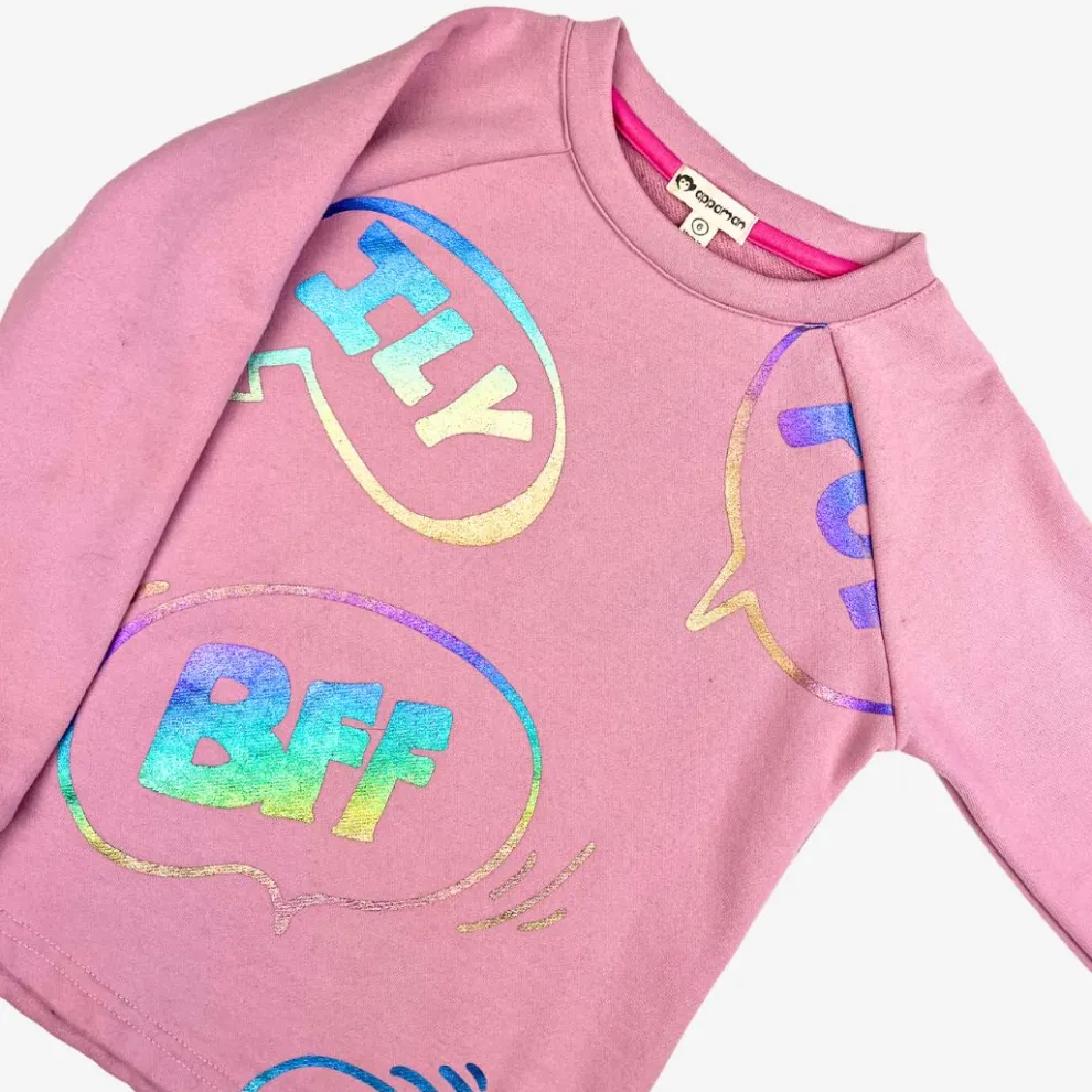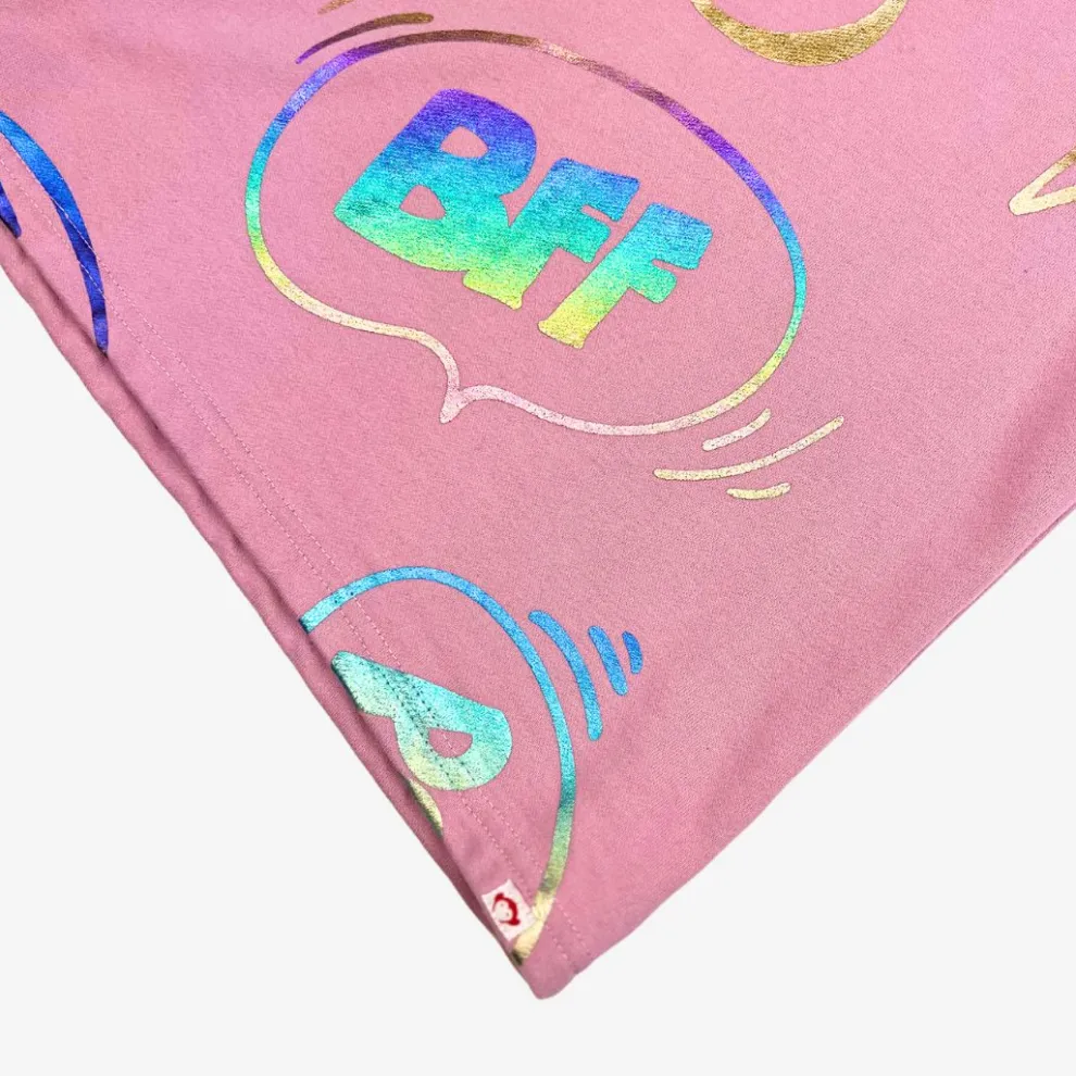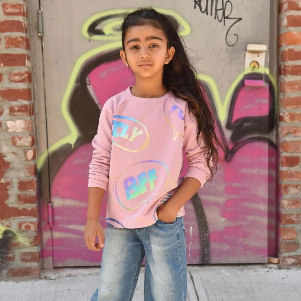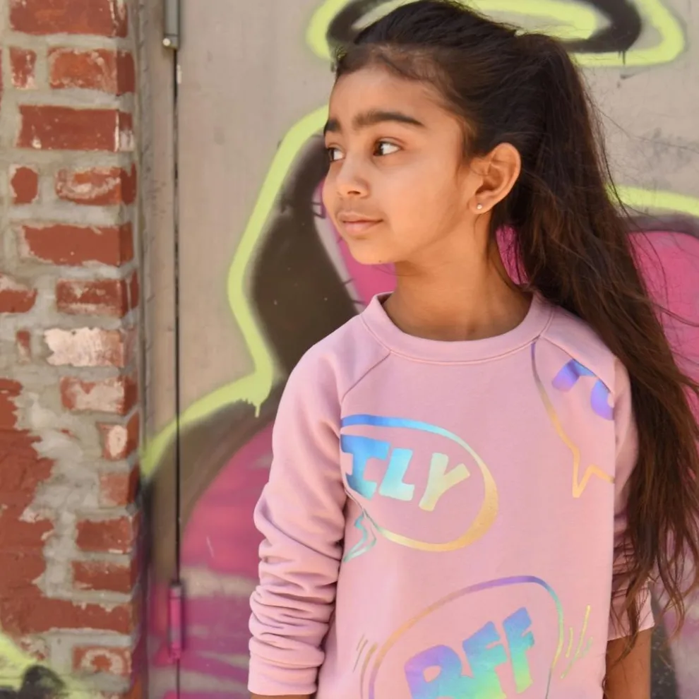 Introducing the Adorable Text Ruslana Top in Dusty Pink for Your Little Princess! This shirt is the epitome of cute and girly with its perfect shade of pink and playful text abbreviations like “ILY” and “BFF.” Your little one will love showing off her trendy style and fun personality with this top. Let her be the center of attention and have fun while looking absolutely fabulous!