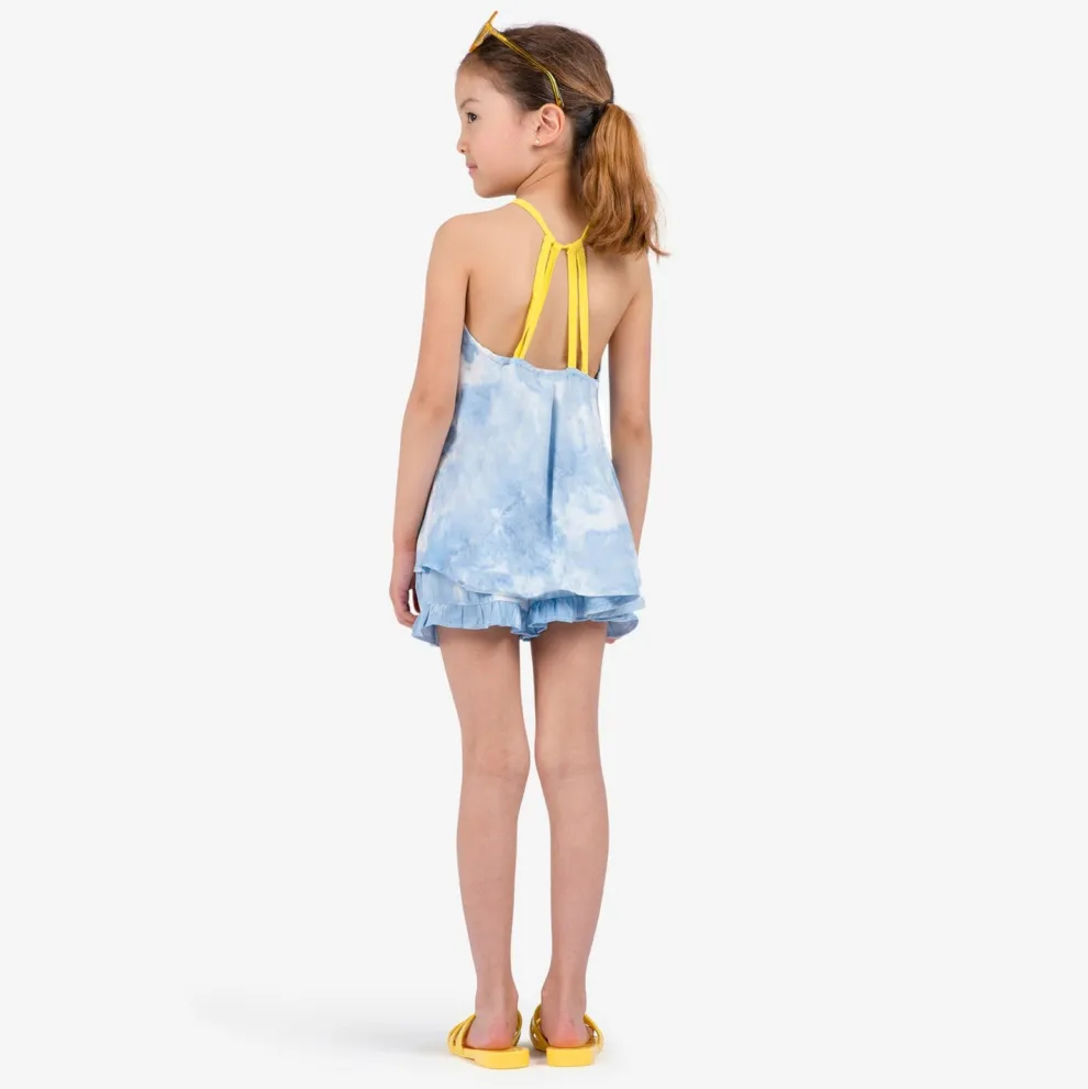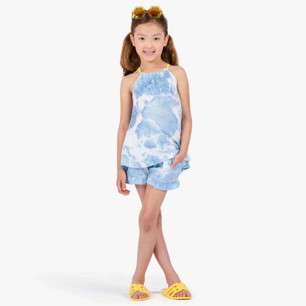 A tank that looks like the sky itself! Introducing the Sanibel Tank in Blue Beach. Wether you’re going to the beach or pool, you know she’ll be matching those waves. Features bright yellow straps and unique back design. Match with the Natalie Shorts in Blue Beach. Pair with the Natalie Shorts in Blue Beach.